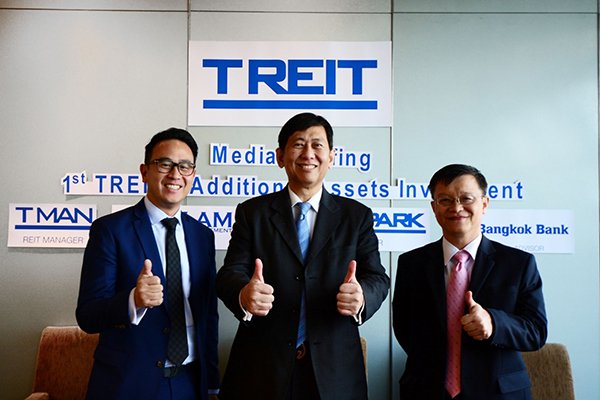 Mr. Virapan Pulges (center), Managing Director of TICON Industrial Connection Plc, together with Mr. Charasrit A. Voravudhi (left), General Manager & Head of Business Development of TICON Management Ltd. (TMAN) and REIT Manager of TICON Real Estate Investment Trust (TREIT), and Mr. Prasert Deejongkit (right), Senior Vice President and Manager, Investment Banking Group, Bangkok Bank Public Company Limited, announced TREIT’s new capital raising plan. The total additional fund raise via the new trust unit issuance is 2,243 million bahtfor the additional investment in TICON group’s warehouses and factories. The subscription period for existing unitholder will start from November 30th to December 4th, 2015, and the public offering to general investors will be during December 8th to15th, 2015 at 10 baht per unit.